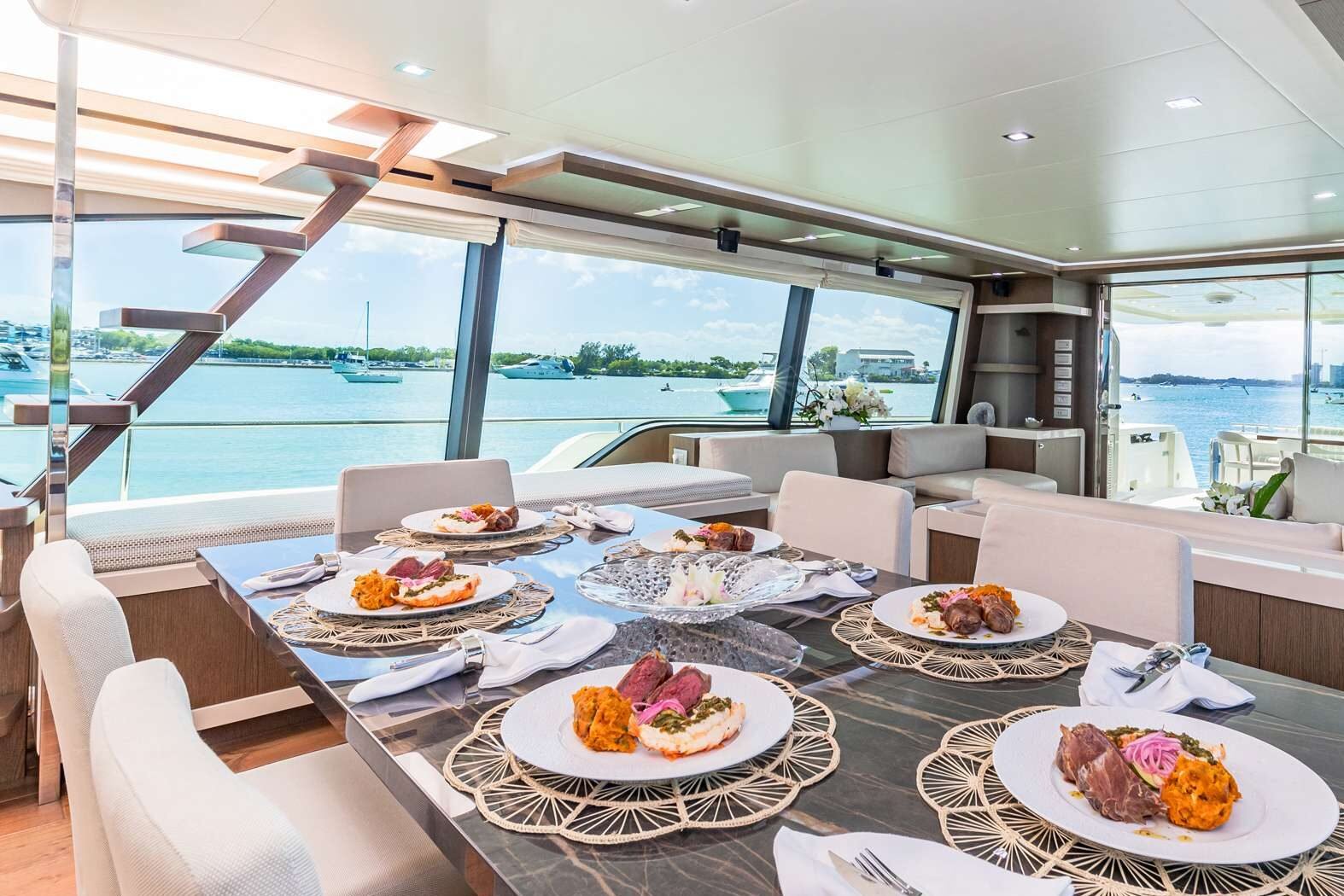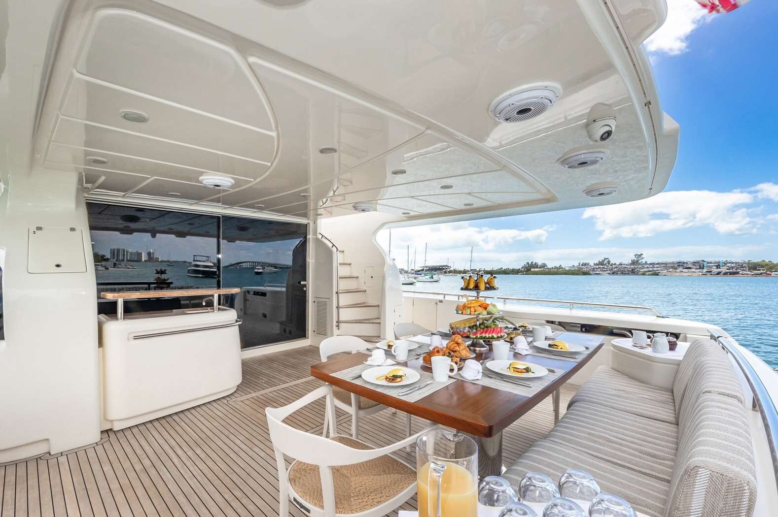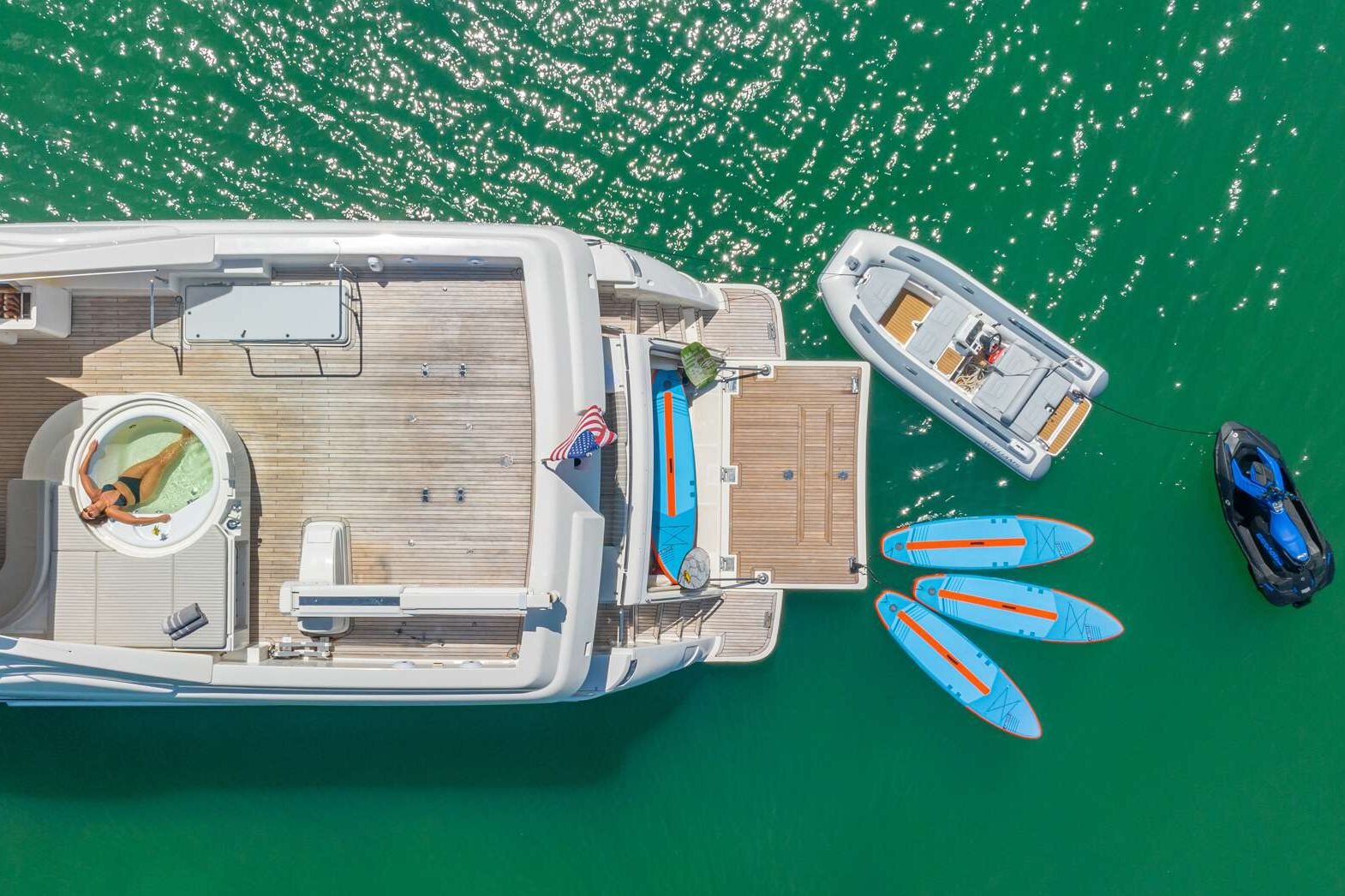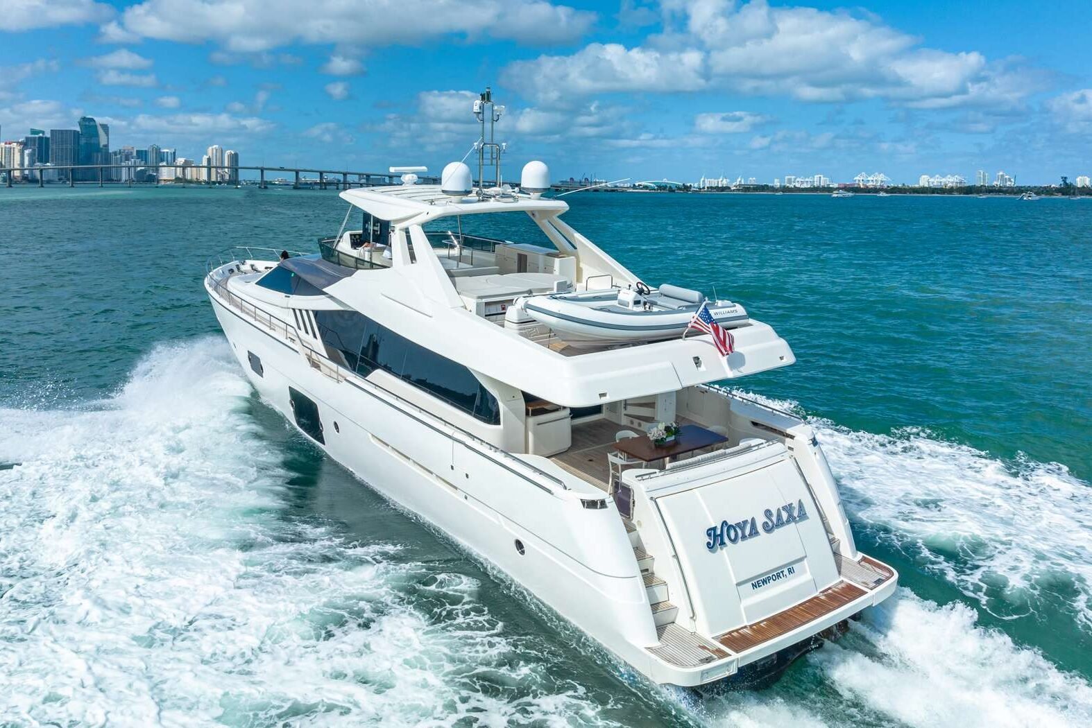 Hoya Saxa is a resplendent 87‑foot flybridge motor yacht masterfully crafted by Ferretti Yachts in 2013, with both its exquisite interior and exterior shaped by the acclaimed Zuccon International Project design studio. Radiating effortless Italian elegance, she glides through azure seas at a cruising speed of 24 knots, reaching a thrilling top speed of 31 knots, all powered by twin MTU diesel engines. The yacht’s expansive sun deck, adorned with sunpads, a relaxing Jacuzzi, and a chic exterior bar, sets the stage for serene days under the sun. Guests can enjoy seamless entertainment thanks to onboard air conditioning, stabilizers, fast Wi‑Fi, and even Starlink, ensuring comfort and connectivity wherever your voyages may lead. Water enthusiasts will delight in the jet tenders, WaveRunners, paddleboards, inflatables, and snorkelling gear on offer. Beneath her graceful silhouette, Hoya Saxa is equipped with precision features such as bow and stern thrusters, a hydraulic swim platform, and a crane. A recent refit in 2023 ensures she sails in pristine condition, making her perfect for luxurious escapes from the Caribbean to New England.