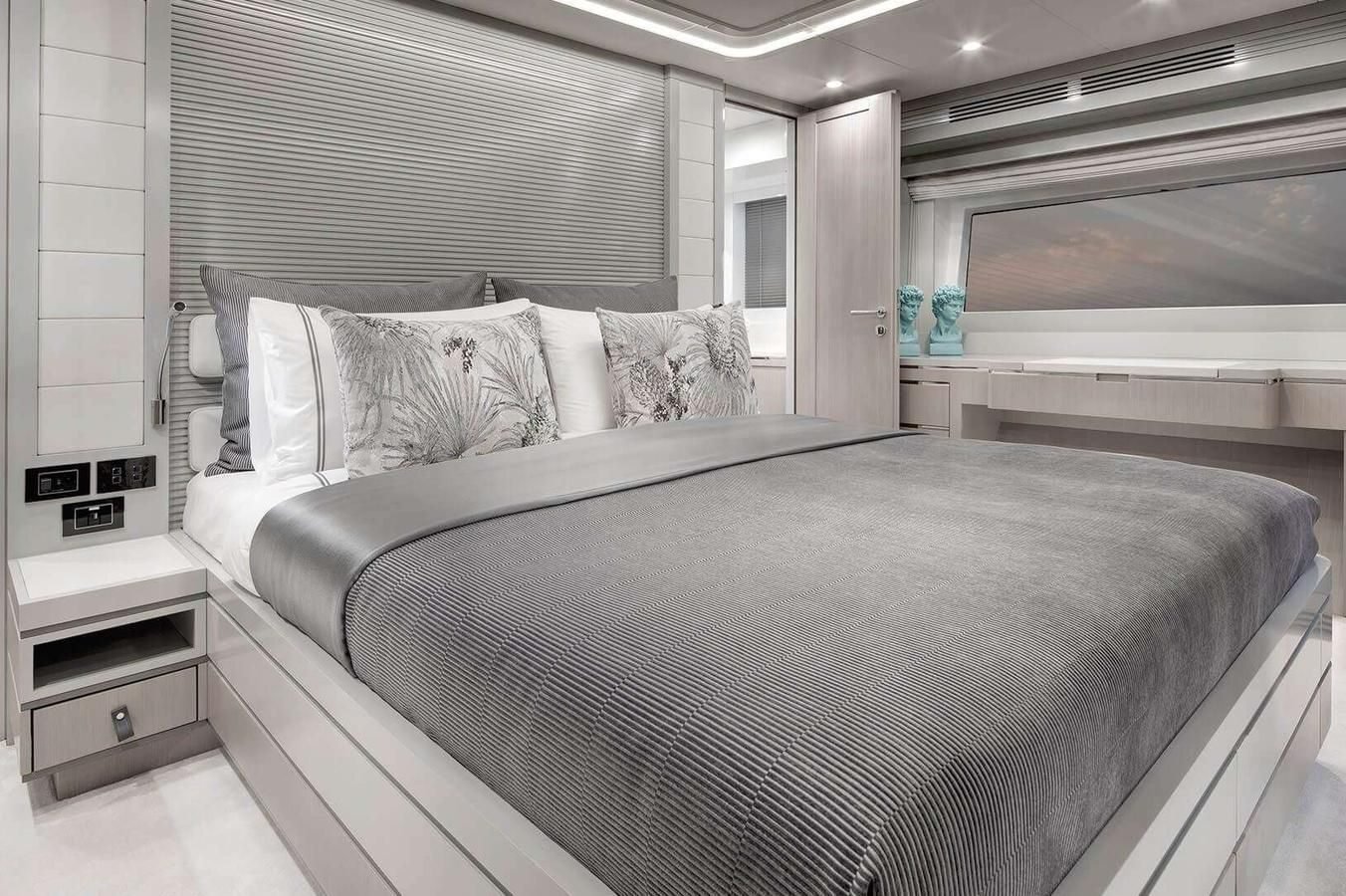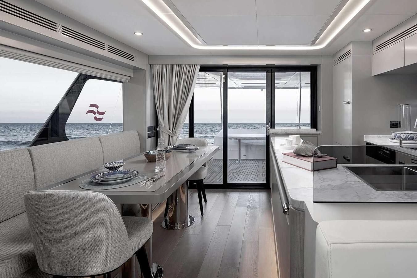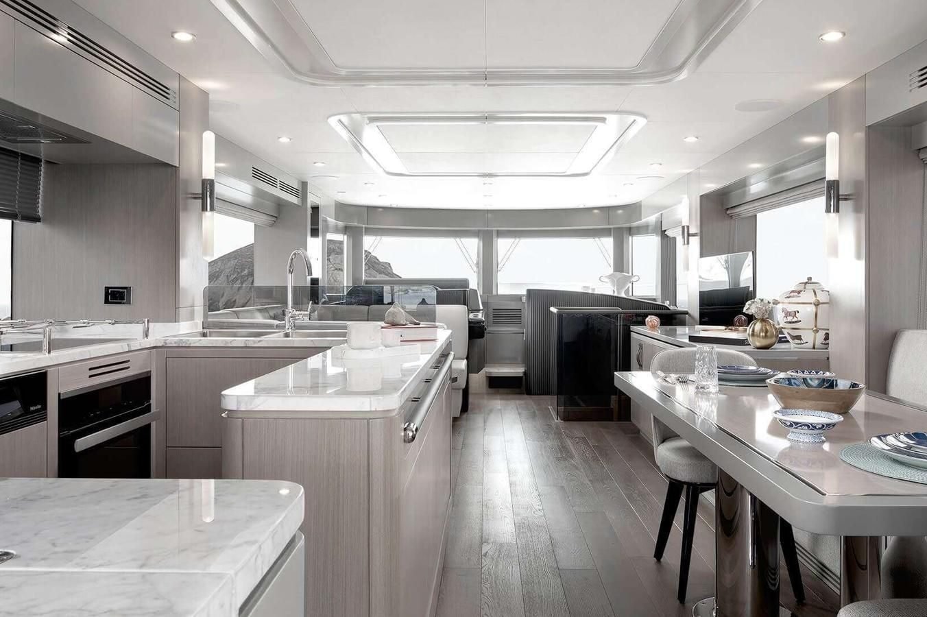 NORMAN’S T4 is a refined 68‑foot motoryacht masterfully crafted by Sirena Yachts in 2022. Her sleek lines and generous 5.79 m (19 ft) beam create an airy, light‑filled interior that flows effortlessly into sociable outdoor lounging and dining areas, including a sun deck with retractable hard roof, expansive foredeck, and welcoming aft platform. Inside, calm neutral tones and elegant furnishings foster an inviting atmosphere throughout the open‑plan salon and dining area, while panoramic windows ensure seamless connection to the sea. Her lower deck houses three beautifully appointed ensuite guest cabins—a full‑beam master, a double VIP, and a twin—each finished with luxurious linens, stylish décor, and modern conveniences, ensuring every guest feels pampered. With a cruising speed of 10 knots and a top speed of 17 knots, she delivers smooth, effortless performance ideal for exploring the Bahamas’ crystalline waters. A crew of two attends meticulously to every need, providing privacy and seamless service. Equipped with paddleboards, snorkeling gear, tender, and beach‑setup options, she offers effortless transitions between onboard relaxation and thrilling water adventures.