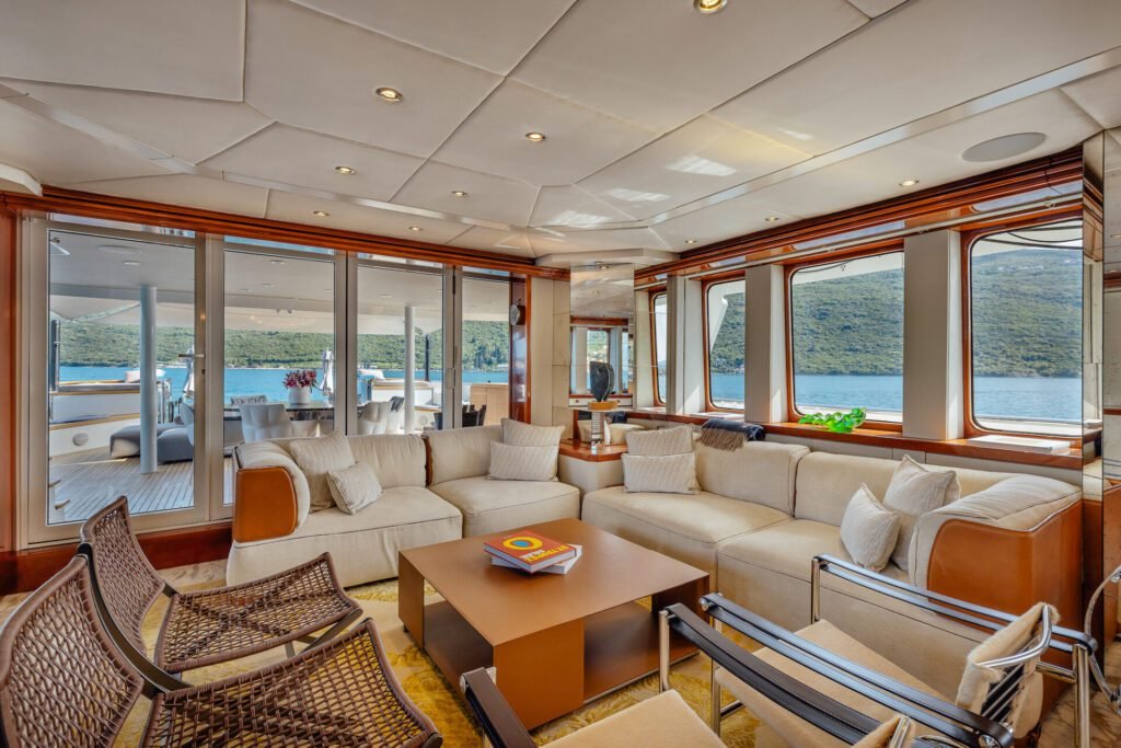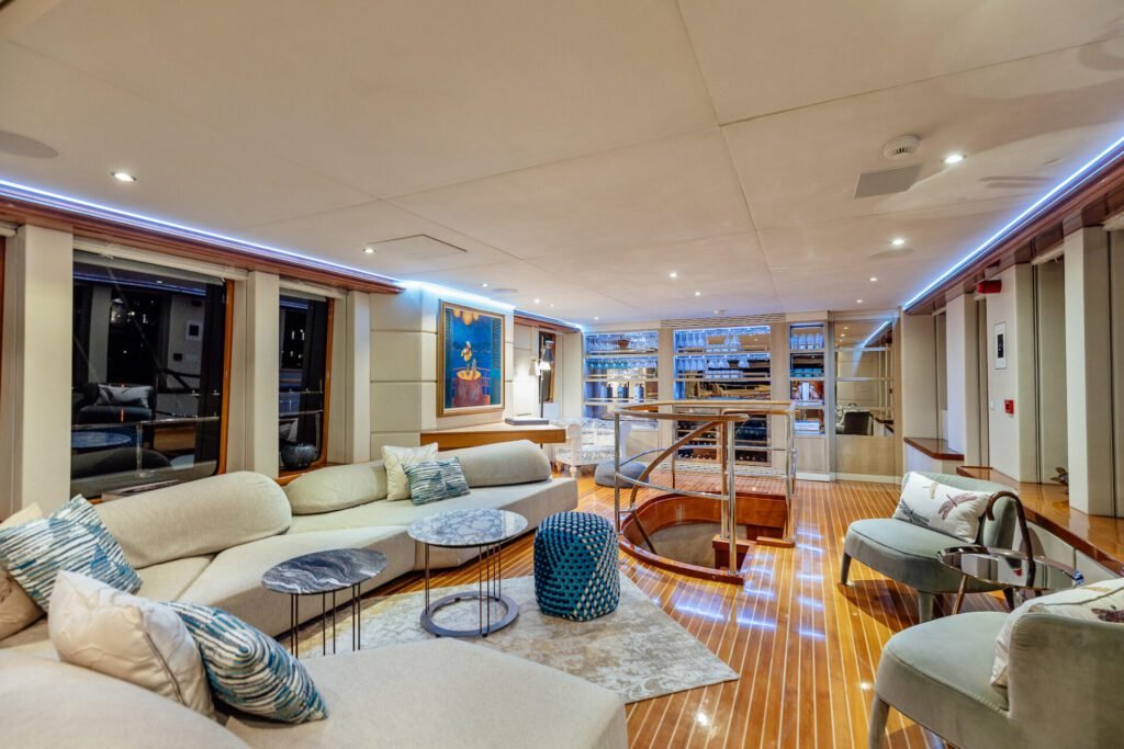 Her expansive decks include a sundeck with a jacuzzi, perfect for unwinding and enjoying panoramic views. The swim platform provides easy access to a range of watersports, including jet skis, wakeboards, and diving.